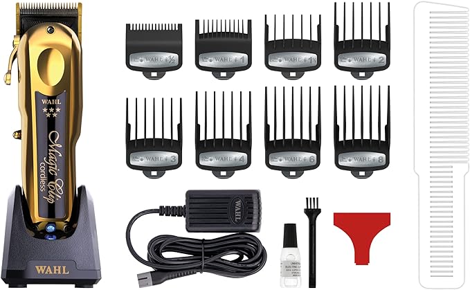 The Gold Magic Clip wireless clipper is lightweight and features the patented stagger-tooth blade which is designed for creating seamless blends while hard or soft line fading. Uses an even stronger motor to cut through thick and textured hair smoothly and easily