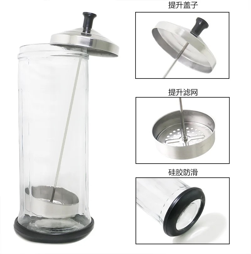 Hairdressing Sterilization Bottle Glass Scissors Comb Stainless Steel Cover Haircut Disinfecting Jar Salon Sterilizing Tool